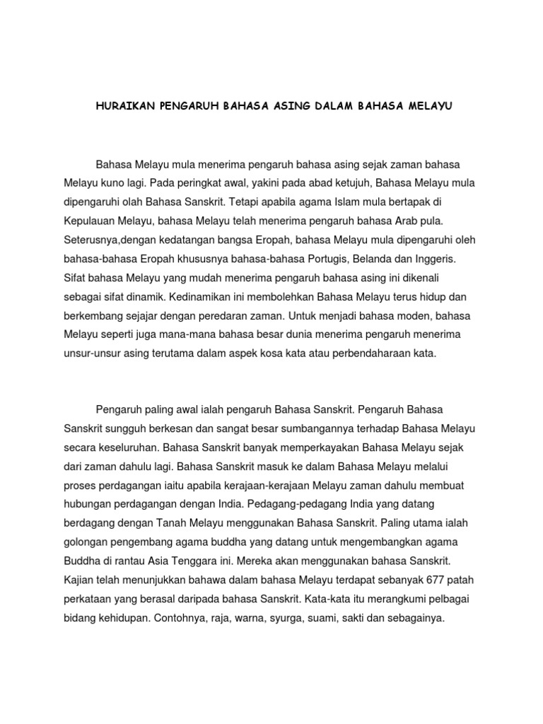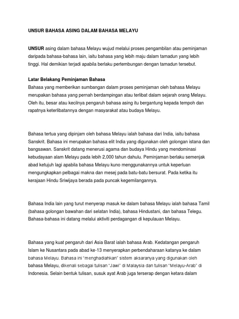 Nota Unsur Bahasa Asing Dalam Bahasa Melayu Pdf