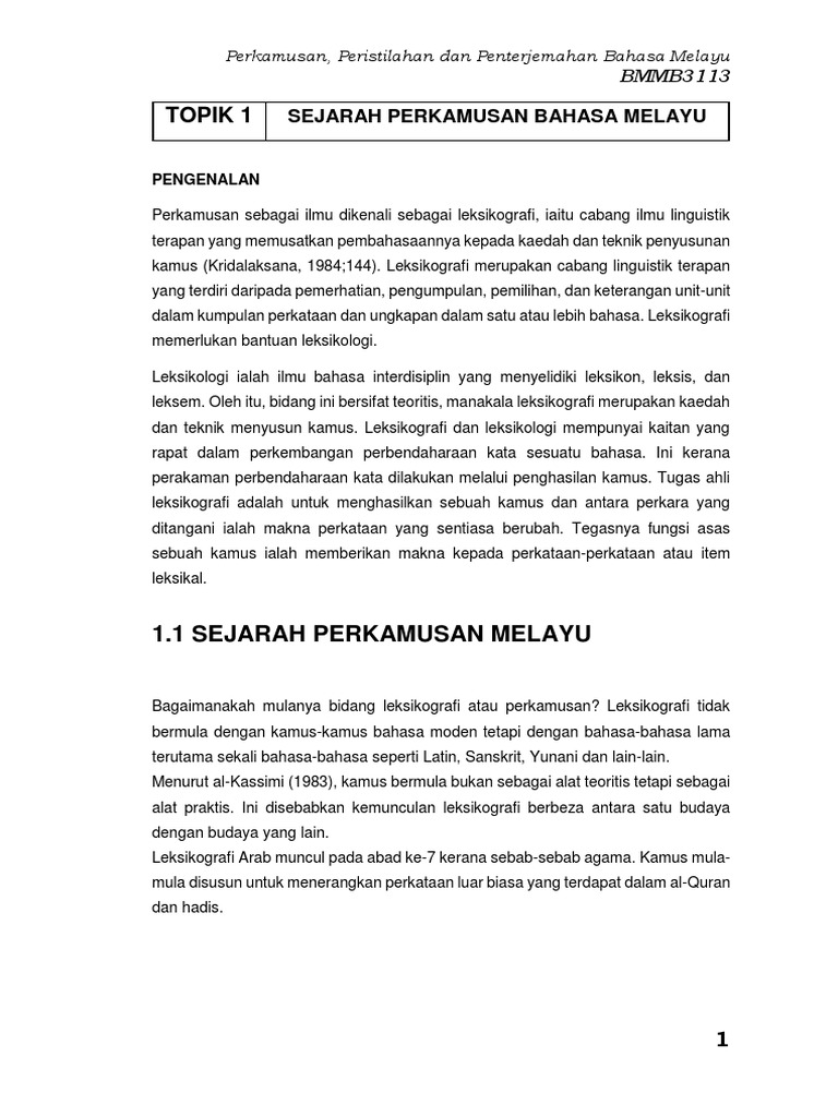 Modul Bmmb3113 Perkamusan Peristilahan Dan Penterjemahan Bahasa Melayu Pdf